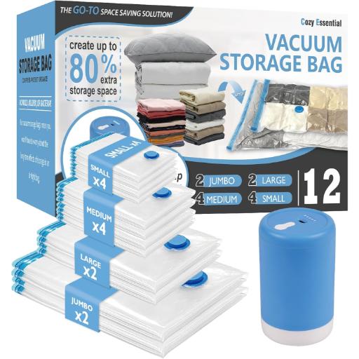 Cozy Essential Travel Vacuum Storage Bags With Electric Pump (12 Pack)