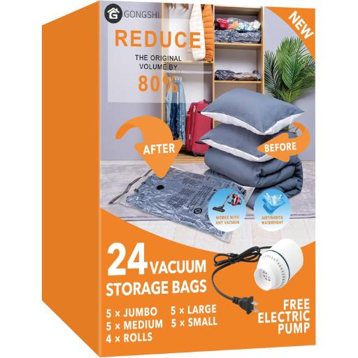 GONGSHI 24 Pack Travel Vacuum Storage Bags With Electric Pump