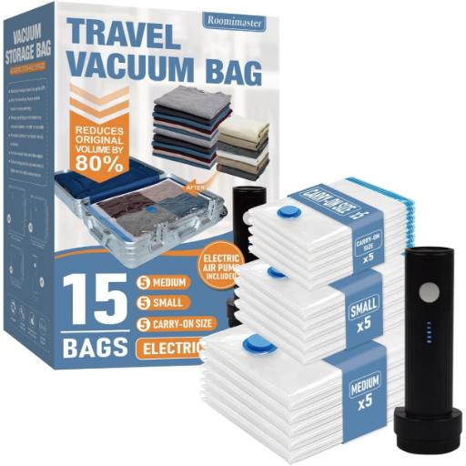 Roomimaster 15 Pack Travel Vacuum Storage Bags with Electric Pump
