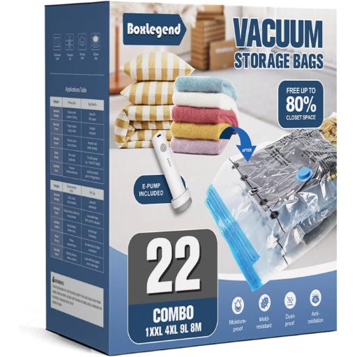 BoxLegend 22 Pack Vacuum Storage Bags with Electric Pump