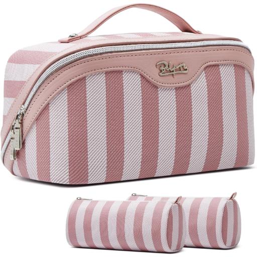 The BOYATU Travel Makeup Bag is a thoughtful combination of style, structure, and generous storage, making it more than just a pouch, but a full organizing system. With three coordinated pieces, this set offers versatility for travelers and makeup lovers who want everything in its place. Whether you’re heading to work, a weekend away, or packing for a long trip, it helps keep your skincare and cosmetics clearly separated and accessible. The soft, water-resistant PU leather and striped design add a touch of polish to your routine, without feeling overdone.